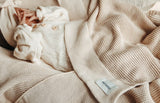 Our cozy knitted baby blanket keeps your little one warm and is an ideal companion during the first baby years. The simple design fits into every baby corner.