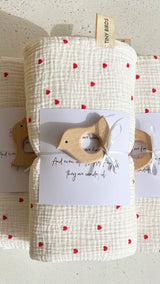 Der süße Herz-Print passt in jede Babyecke und ist eine wundervolle Ergänzung zur Babyerstausstattung und ein treuer Weggefährte, der auch lange nach der Babyzeit noch gebraucht wird!