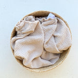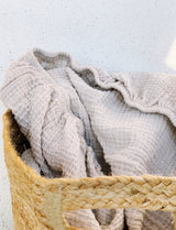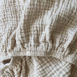 Naturfarbenes Spannbettlaken aus kuscheligem Musselinstoff. Passt für alle gängigen Gitterbetten.